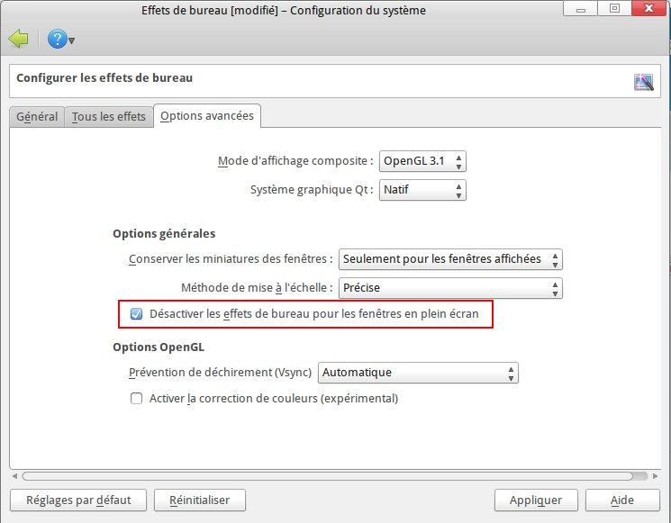 Pour jouer à des gros jeux je fais Alt+Maj+F12 pour retirer le bureau en 3D, et passer en 2D comme on dit.