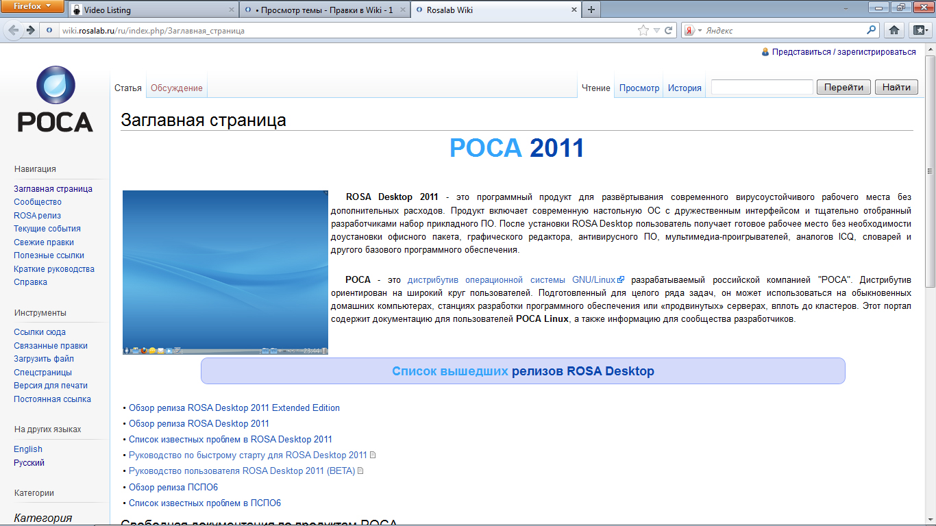 Главная, Rosa релиз, Полезные ссылки.