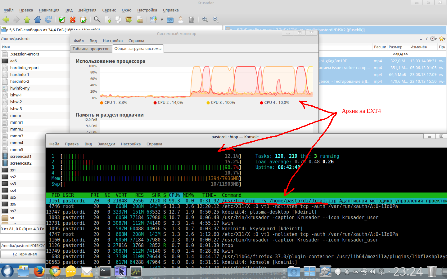 PastorDi писал(а):А можете скринкаст записать, как у вас 4 потока работают в htop при упаковке архивов?