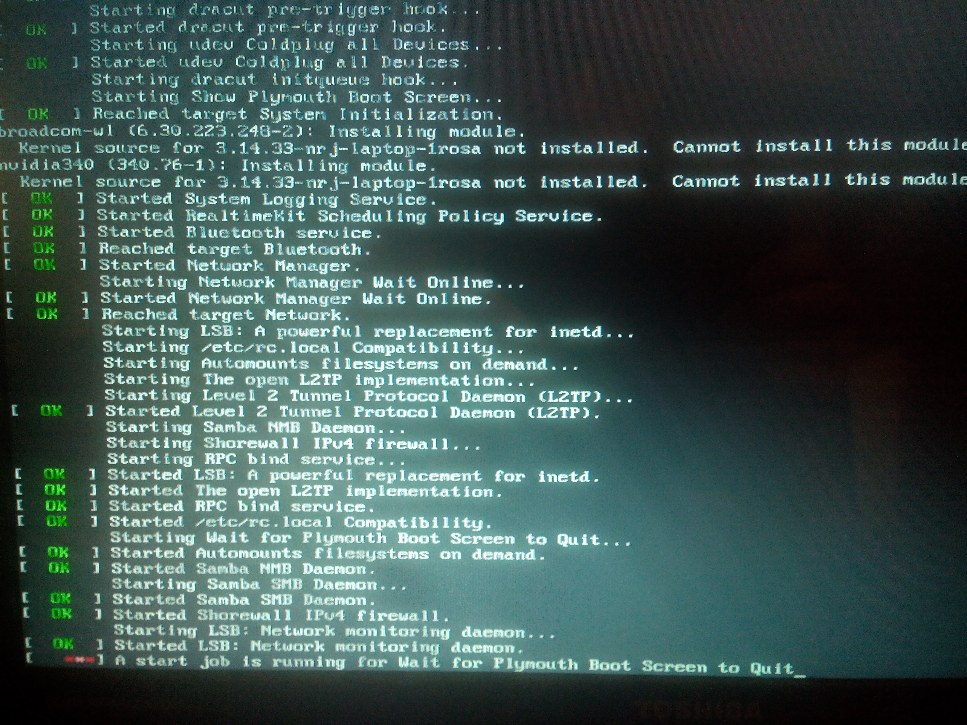 Вы установили только ядро и модули не могут собраться.Fromrsu писал(а):Поставил, перегрузился. Ноут уходит в бесконечные раздумия на этом моменте.