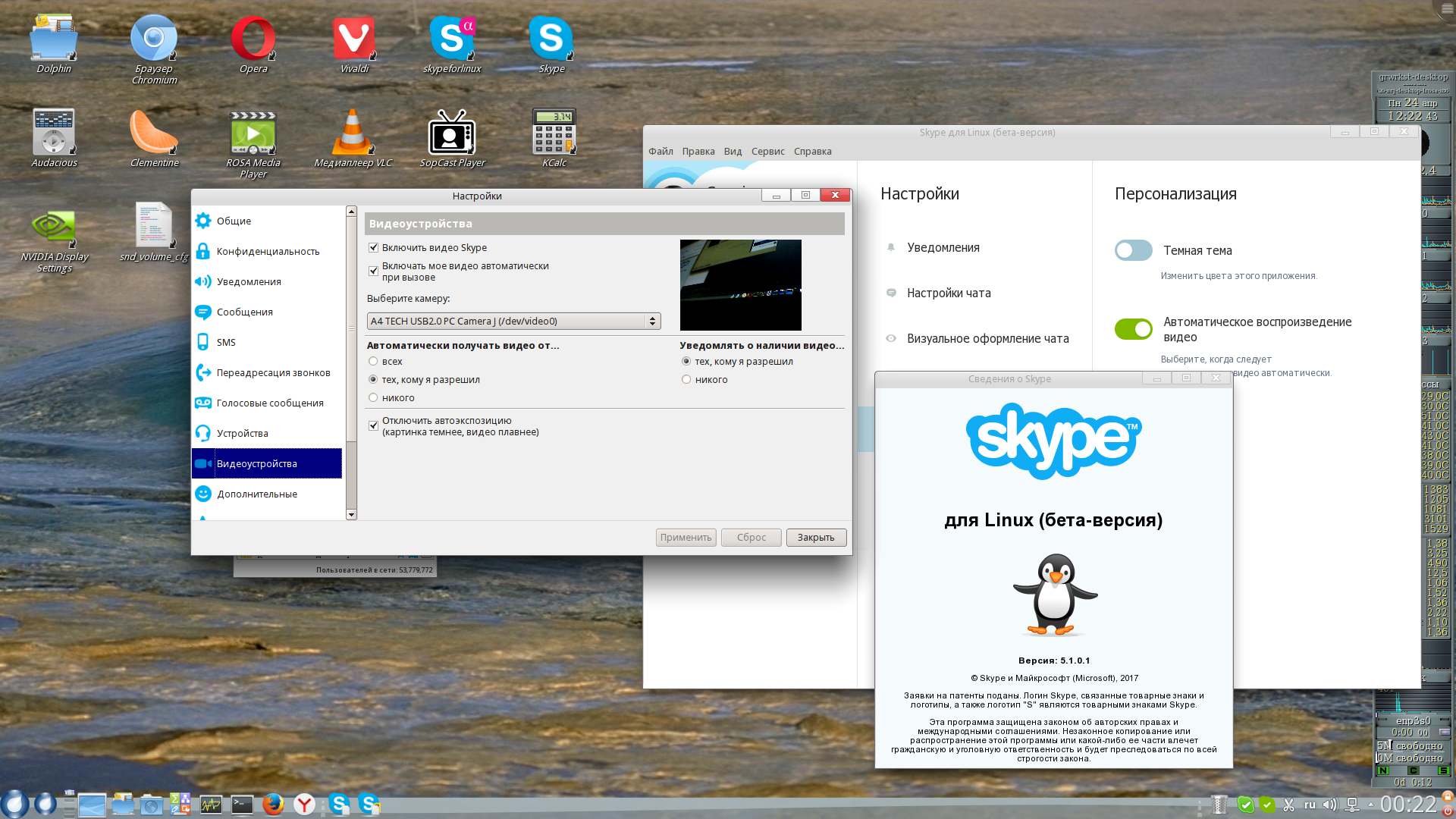 Старый скайп v.4.3 нормально показывает, но нет связи с новой версией.ans писал(а):OS Rosa fresh R9 x64