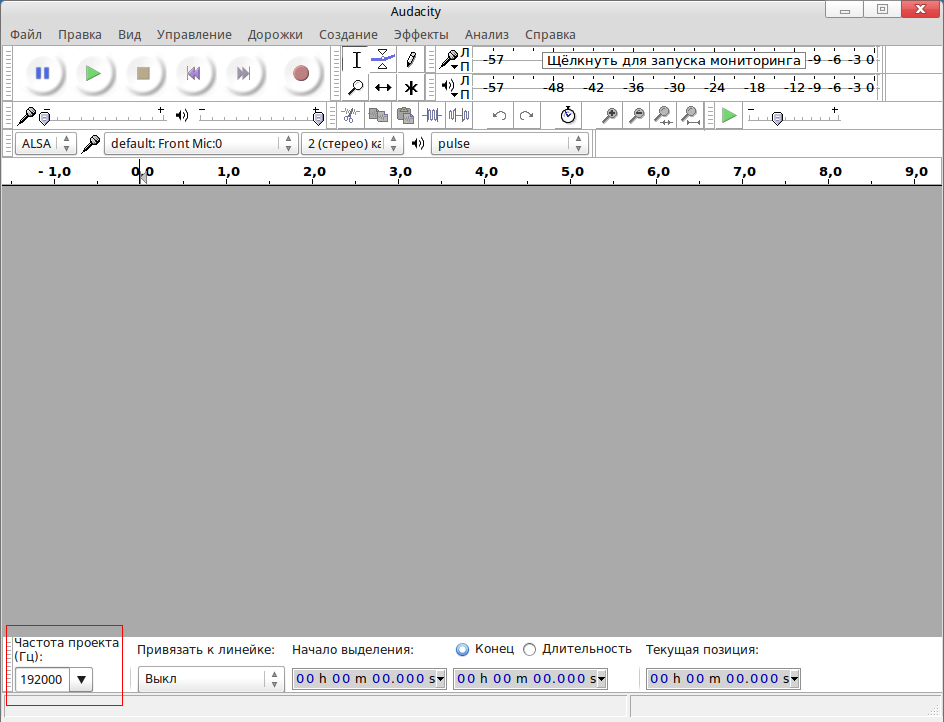 в софте все стоит по умолчанию - ALSA и Pulse (в самом Audacity - default в настройках).