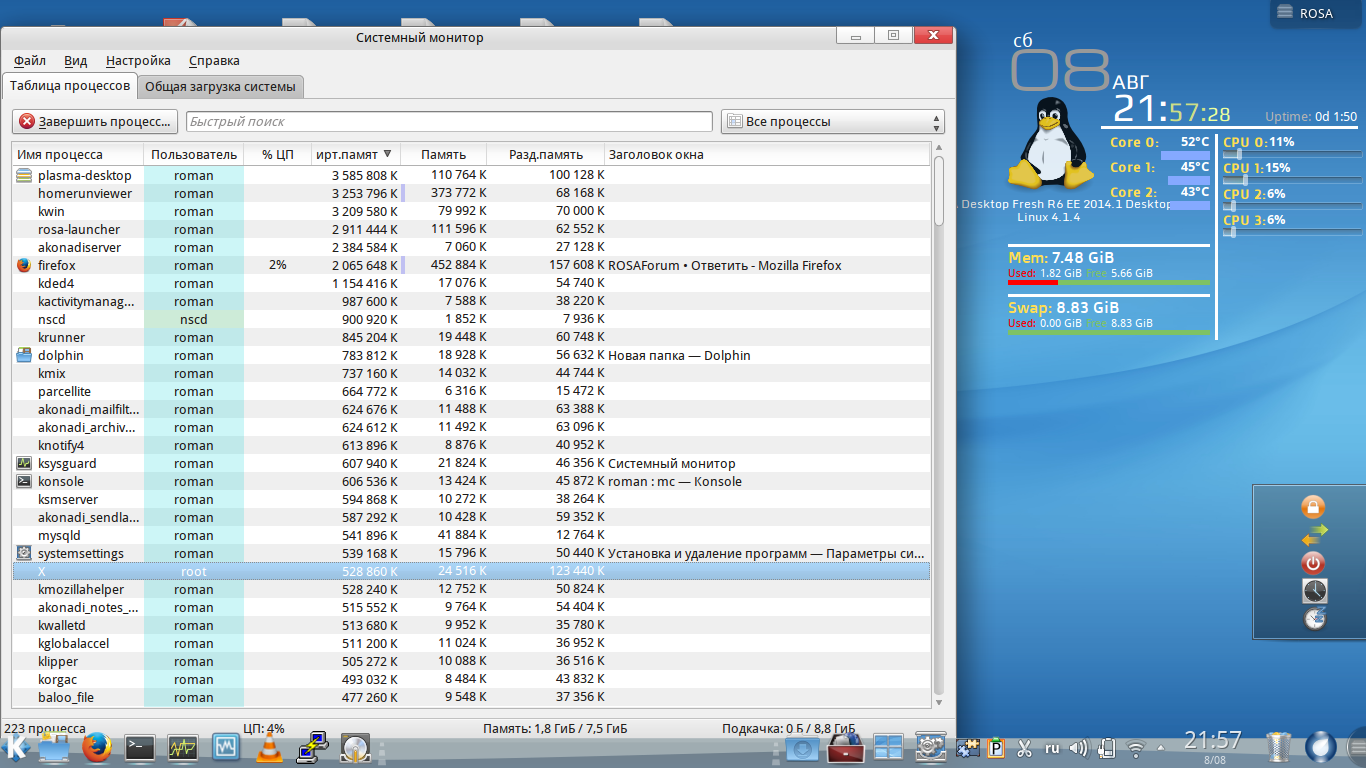 ROSA R6, 64-bit; kernel 4.0.8
