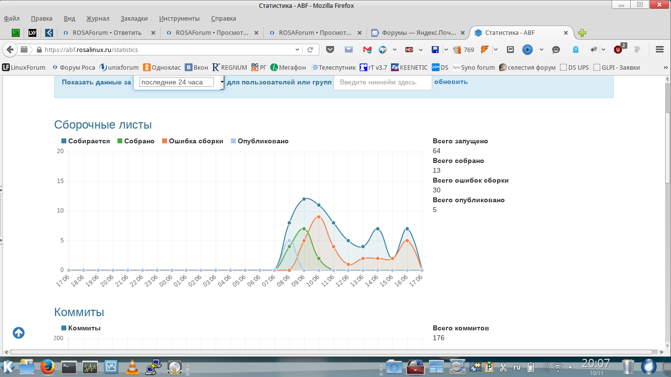 Так как ABF не работал 11-12 дней - статистику пока лучше смотреть за 24 часа Так что сборка уже идет, хотя пока и не в таких объемах как раньше, но думаю быстро выйдут на прежний уровень.Алзим писал(а):Я сомневаюсь, что работает. Даже по вашей статистике видно, что после 28.10 ни одного пакета не собрано.Галахов Роман писал(а):ABF - снова работает https://abf.rosalinux.ru/statistics, и можно собирать/пересобирать пакеты.