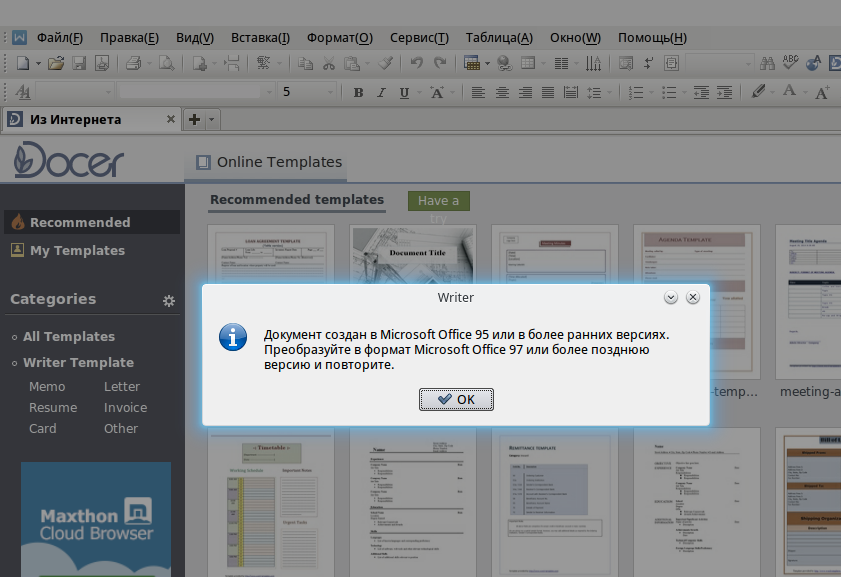 Barmalei писал(а):Попробовал WPS пересохранить снова в doc и docx. LO не открыл doc, а docx открылся мигом.