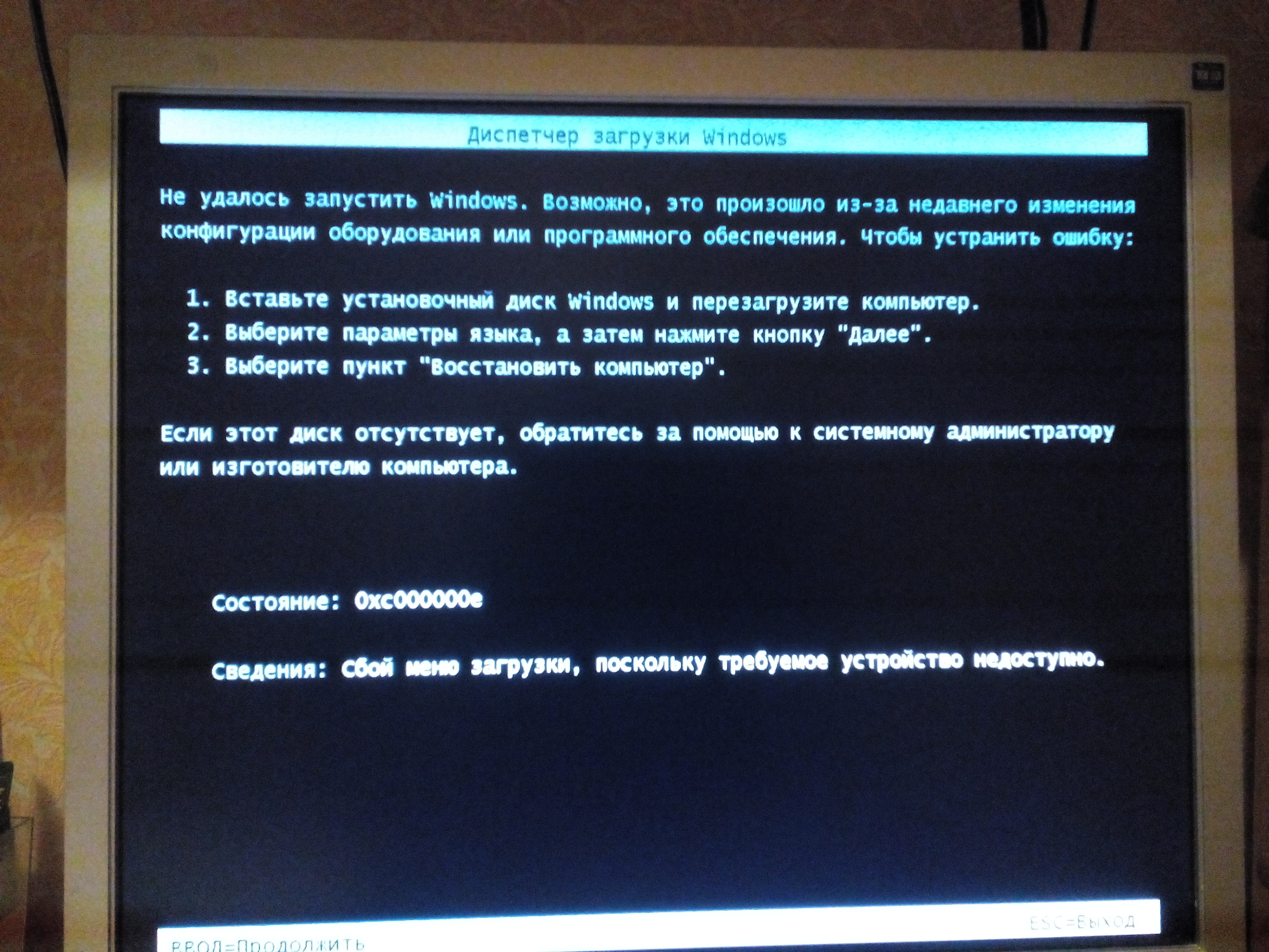 Попробуйте загрузиться с другого диска.