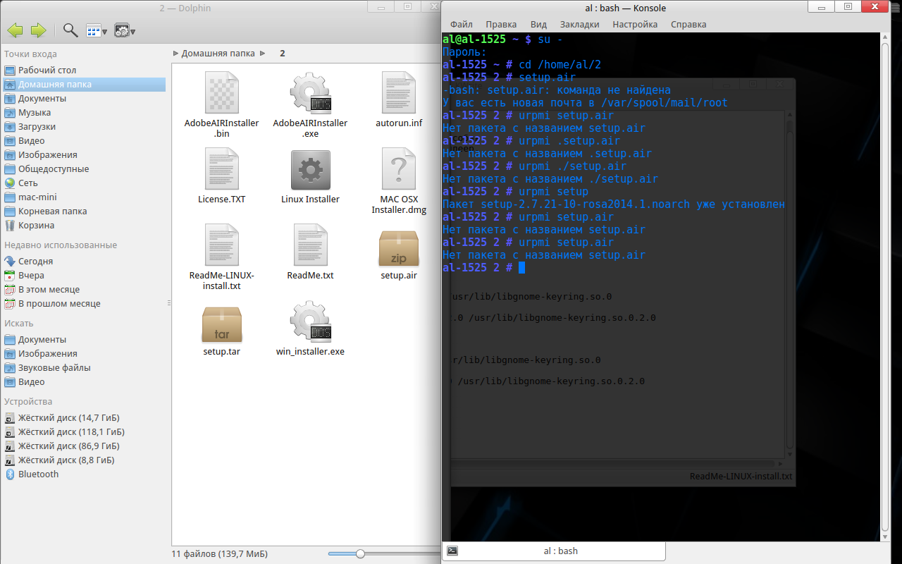 [Adobe AIR Application Installer:8672][ERR] Elevated install failed: error 1 ¨0®/rpm error: error: невозможно открыть !<arch>: Нет такого файла или каталога