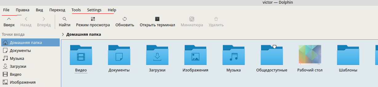 Но никак на могу исправить проблему с меню dolphin.