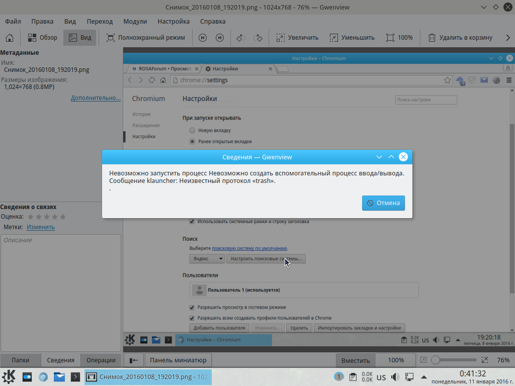 Gwenview не удаляет ненужные изображения в Корзину. Выдаёт ошибку.
