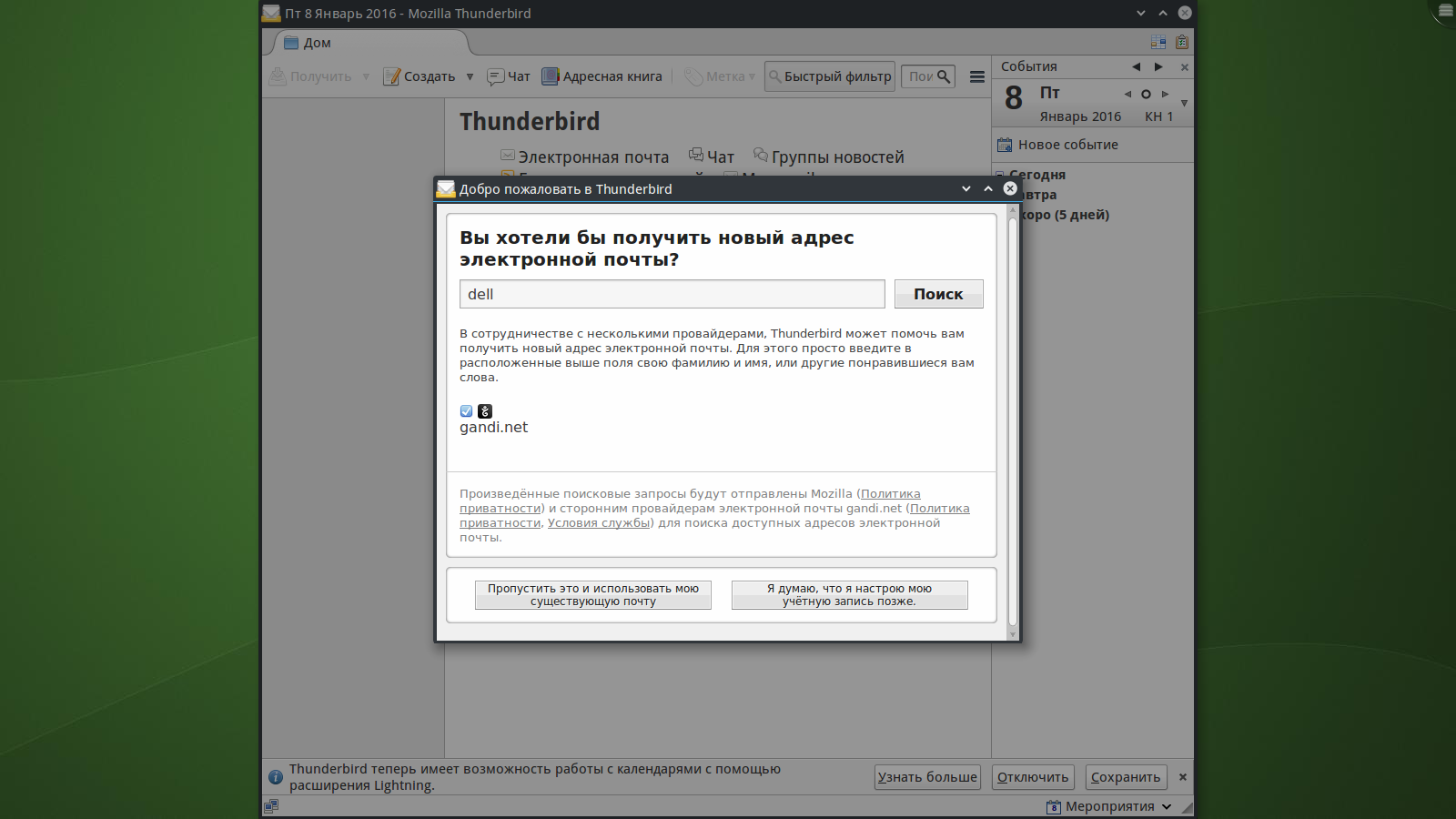 Не имеет эффекта. Всё равно вылезает ThunderBird.