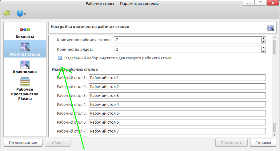 ...в старых версиях KDE прямо в настройках была возможность каждому рабочему столу приписать собственный фон и т.п.. Здесь я такого не вижу, но догадываюсь, что все дело в "комнатах", в которых пока никак не могу разобраться. Есть специалисты по "комнатам"? Подскажите, как разным рабочим столам назначить разный фон?!