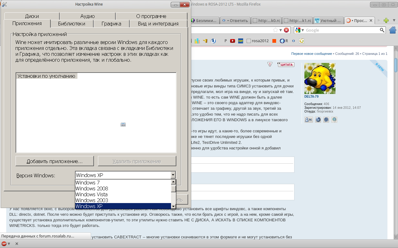Вот мой Wine: на фото - конфигуратор Wine. Я на ем эксперементировал: шо не шло от ХР, пробовал от Висты, ну и т.д.что Wine основан по принципу работы Windows XP