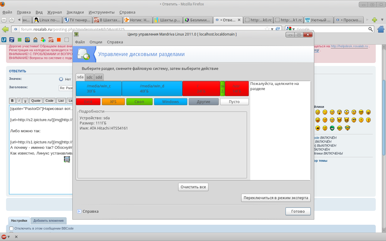 Как известно, Линукс устанавливается в последнюю очередь, при наличии двух и более ОС. Вот как разбит винт у меня: Вопрос такой: Почему у вас Виндовский D расположен последним?