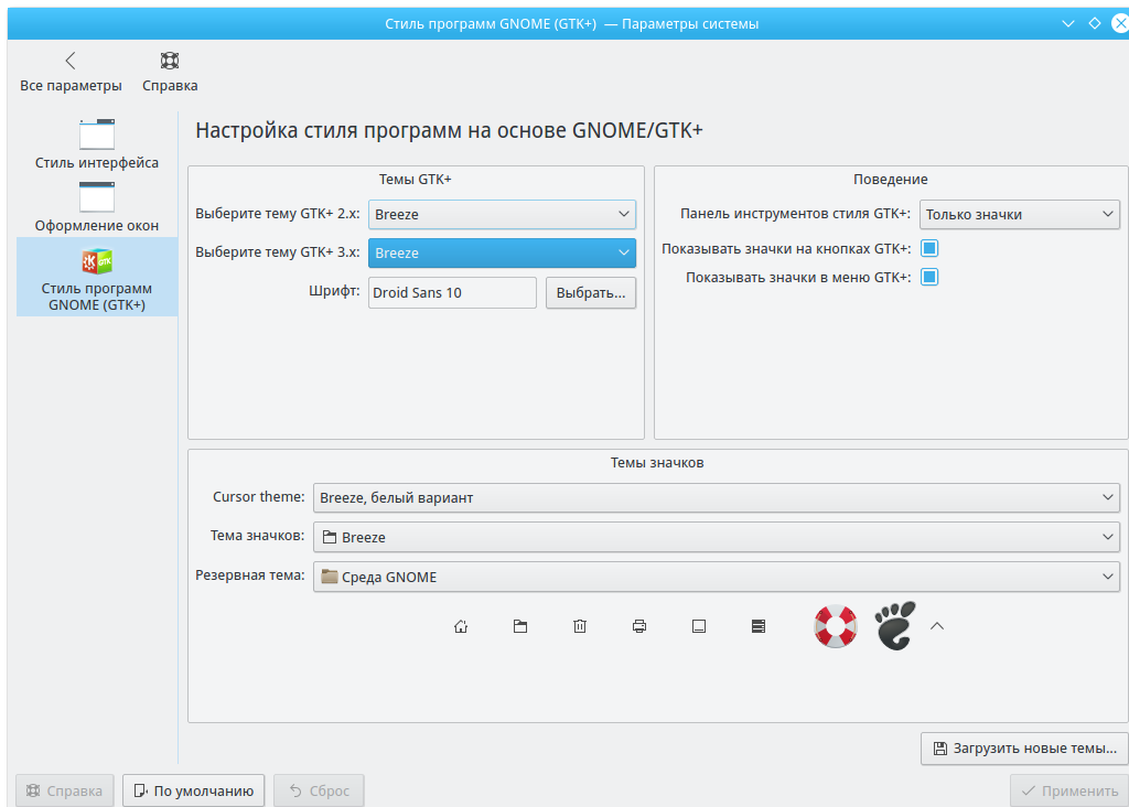 Спасибо за скриншотРЕШИЛ ПРОБЛЕМУ с помощью вашего скриншота.А именно Внизу есть три строчки и верхняя называется "cursor theme". Вот там то и нужно было выставить тему курсора для gtk приложенийАлзим писал(а):У меня в Плазме 5 для GTK+ стоит тема Breeze и всё нормально отображается.