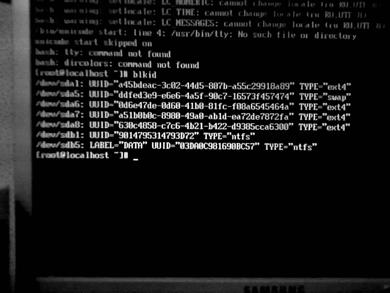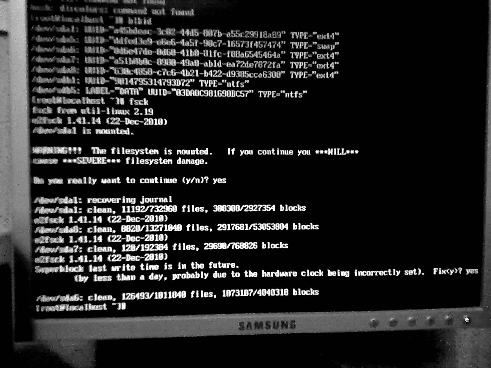 К чему это я? ах да! обещаные скрины. это после ввода пароля это после команды blkid а это после fsck
