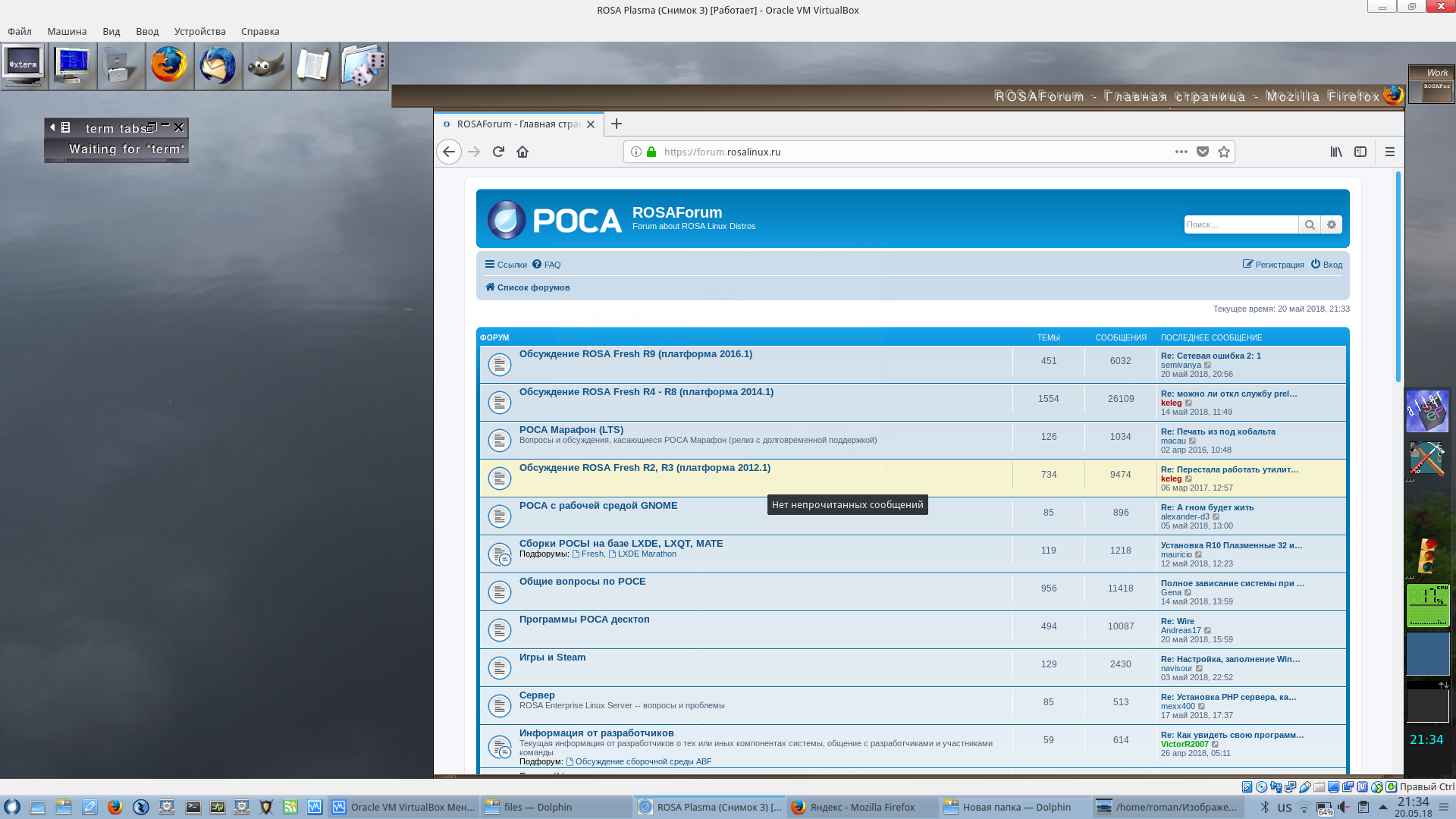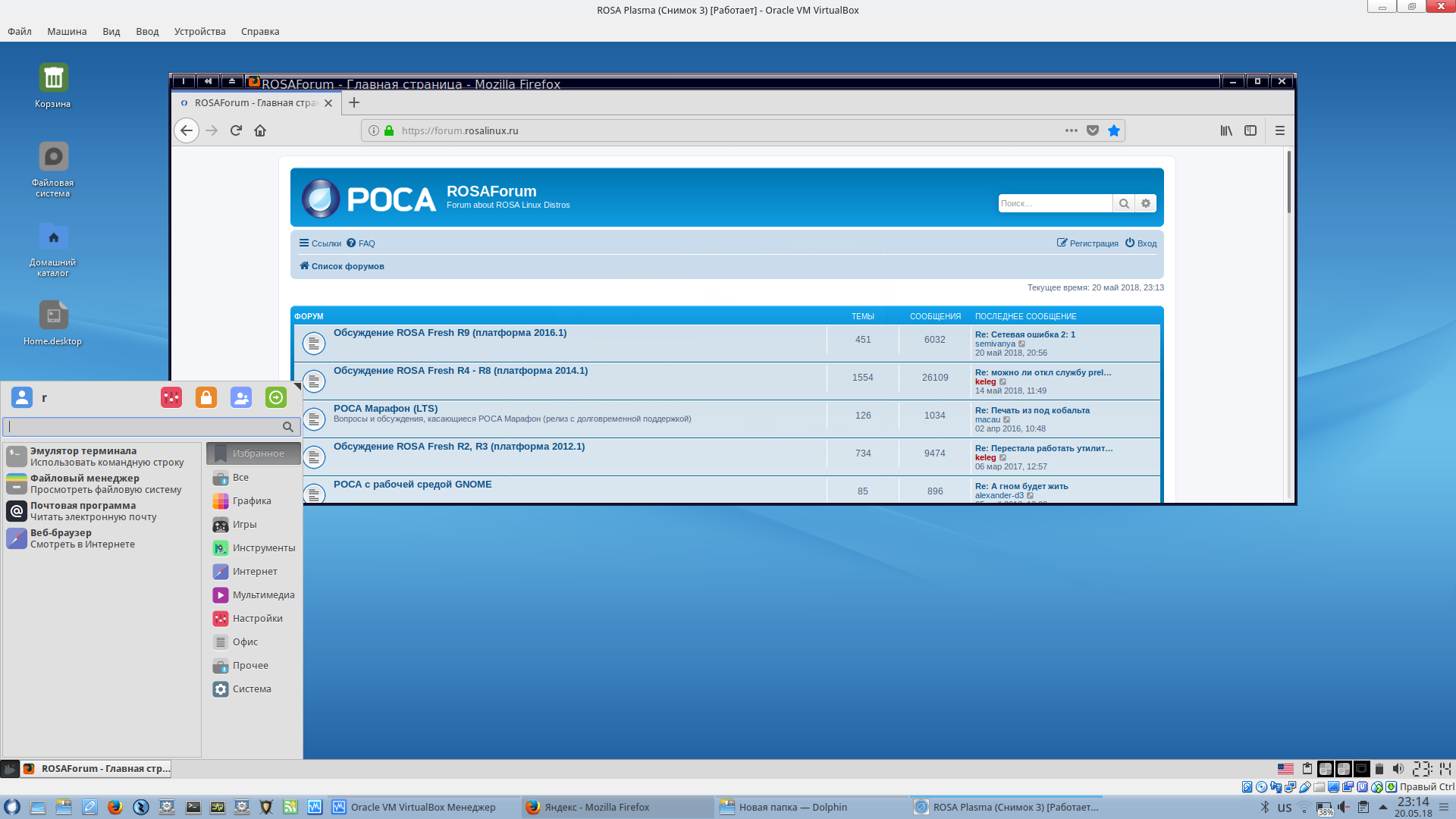Начал очередное тестирования DE/WM. ROSA R10 (VirtualBox) Простой тест: войти, интернет на кабеле, включить Firefox (или другой браузер), войти в интернет, выйти из DE. Вот, что получилось: