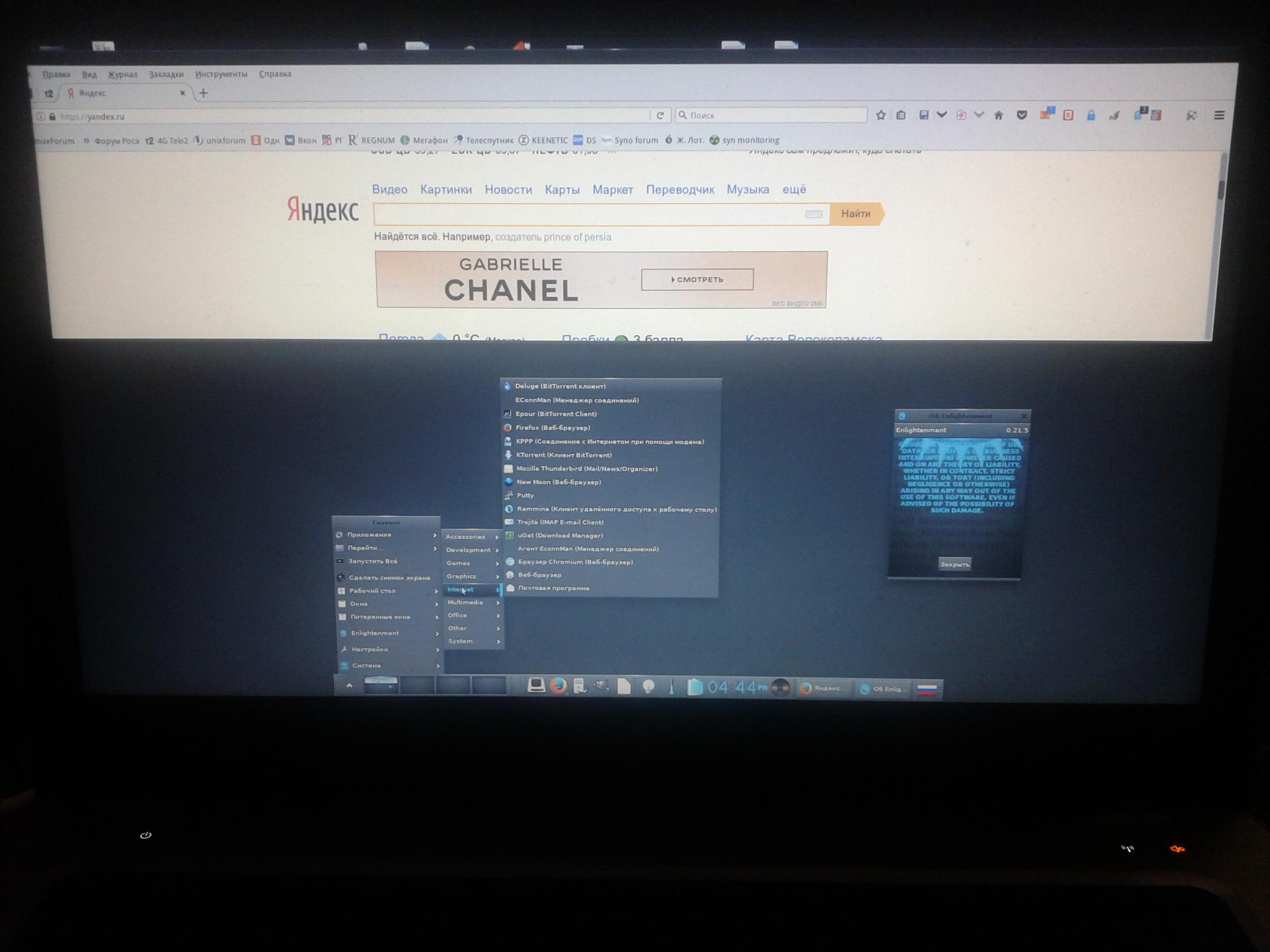 E 21.5 - тест пройден. Давно не обновлялся. В репозитории 0.21.5 от 09.12.2016, на оф. сайте версия 0.22.3 от 23.03.2018 https://www.enlightenment.org/
