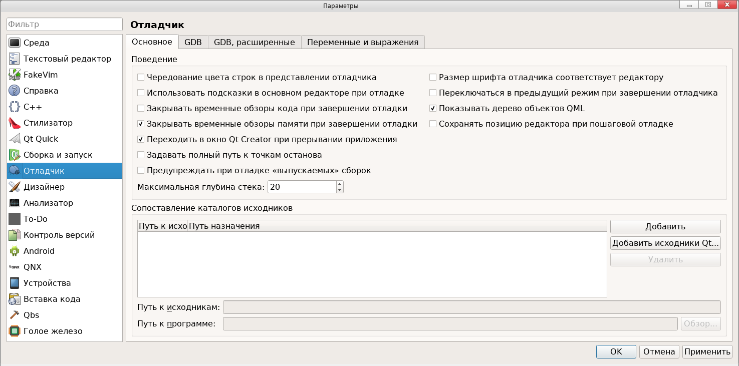 Мало того, я эти же самым Qt-Creator и этим же GDB отлаживаю код на контроллере STM32F103RET6 на чистом C. Правда, Qt-Creator не всегда видит переменные, созданные вне функции Main и текущей функции, так же очень плохо понимает массивы.