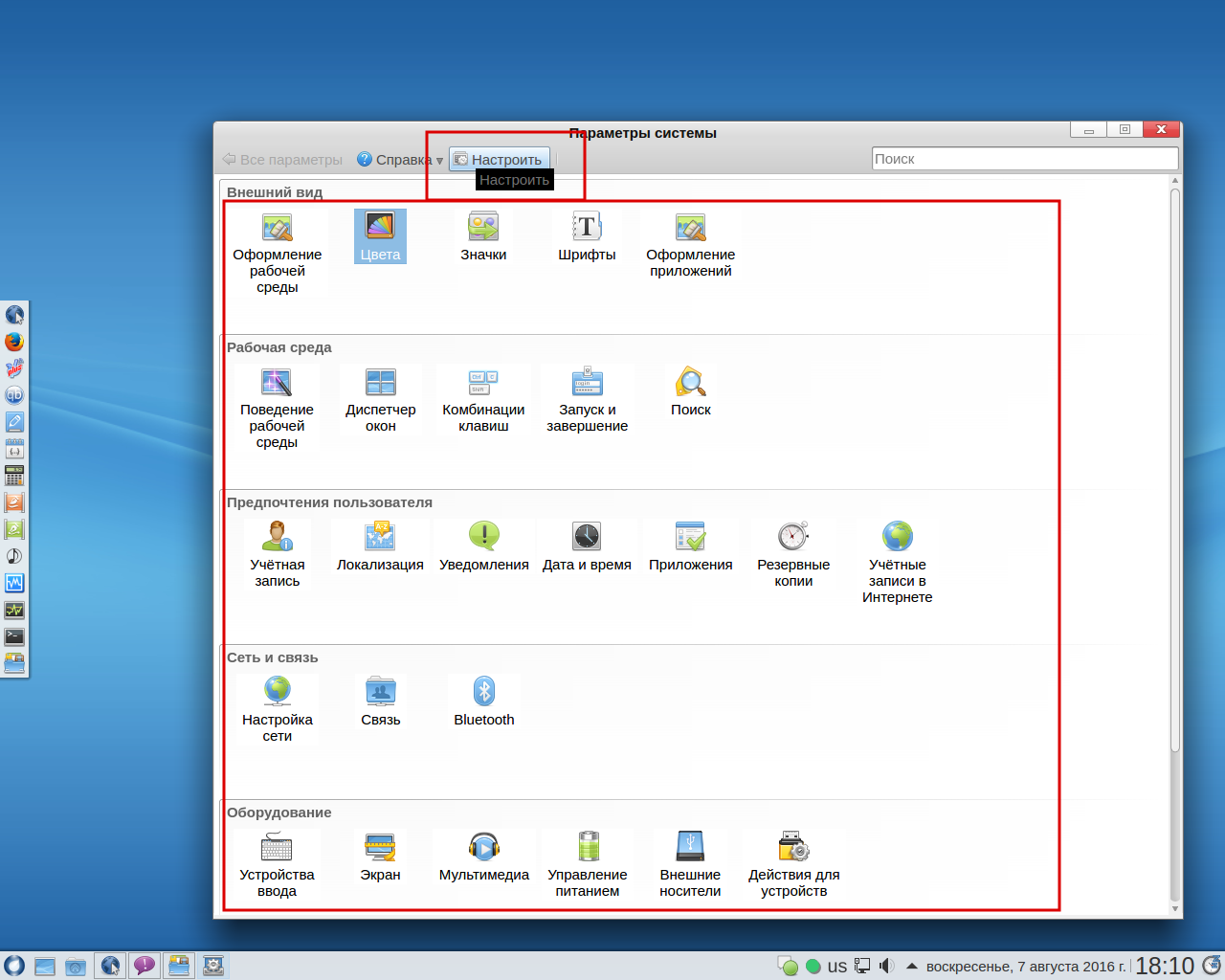 2-е: непонятные квадраты вокруг значков в параметрах системы.