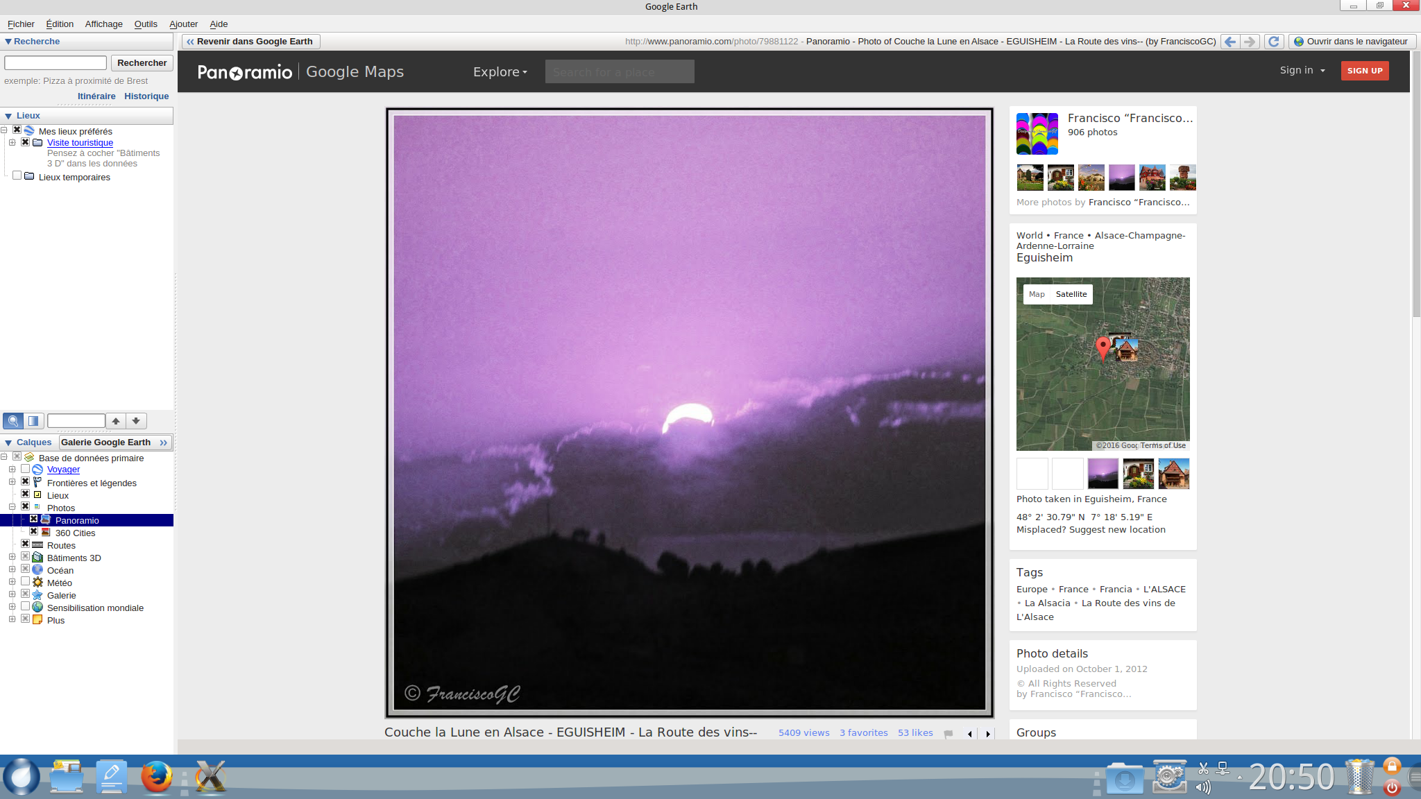 Par contre pour les photos panoramio, aucun problèmes sur mon portable avec ROSA MATE 32 bits mais sur le fixe avec ROSA PLASMA 64 bits je constate la même chose que toi
