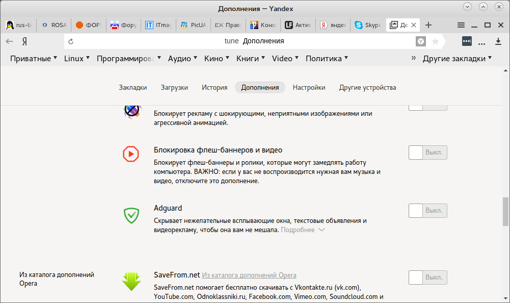 п.с. флеш ерунда в опчем, гораздо большее неудобство составляет список доп.пакетов под yandex-browser, которые надо в Росе пока вручную устанавливать. Но все же их стоит задействовать, пригодятся. Будем надеяться что в яндексе обратят внимание на один из лучших линуксов в России и мире
