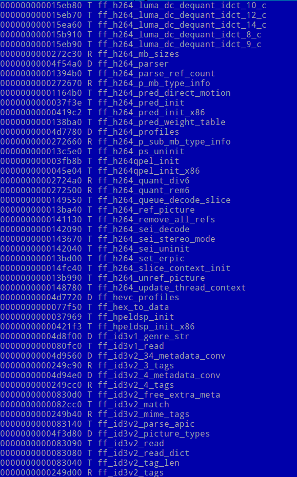 Так и в исходном варианте с картинками показаны не все экспортируемые функции. Текст отфильтровать проще, как и сравнить.Harrys77 писал(а):настолько огромен вывод, что пришлось в файл загонятьна экране терминала начало не умещается.