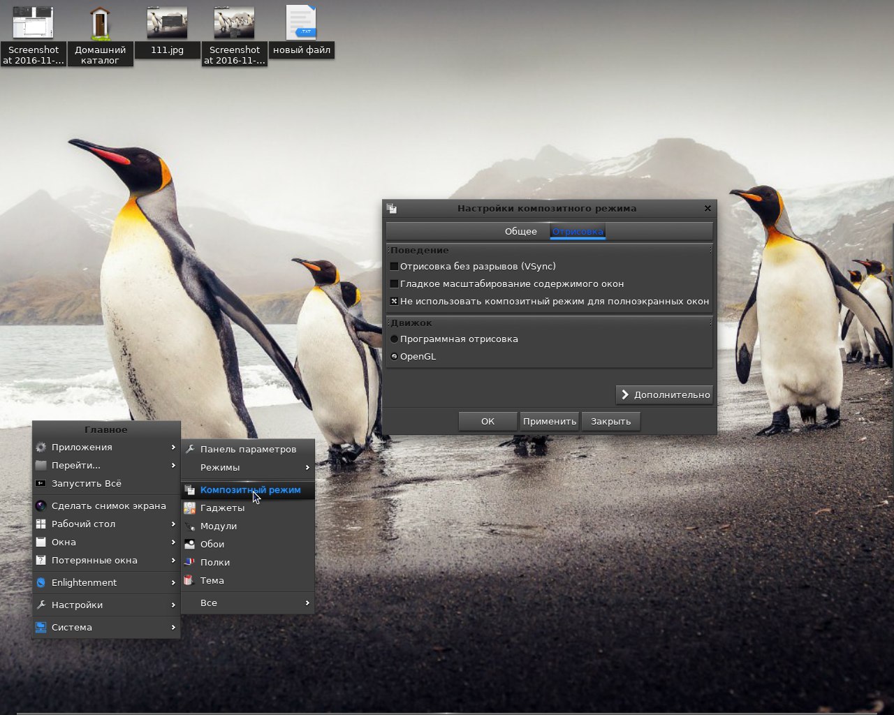 E 21.5 - тест пройден. Давно не обновлялся. В репозитории 0.21.5 от 09.12.2016, на оф. сайте версия 0.22.3 от 23.03.2018 https://www.enlightenment.org/