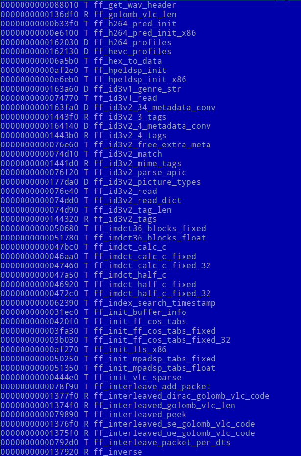 Так и в исходном варианте с картинками показаны не все экспортируемые функции. Текст отфильтровать проще, как и сравнить.Harrys77 писал(а):настолько огромен вывод, что пришлось в файл загонятьна экране терминала начало не умещается.