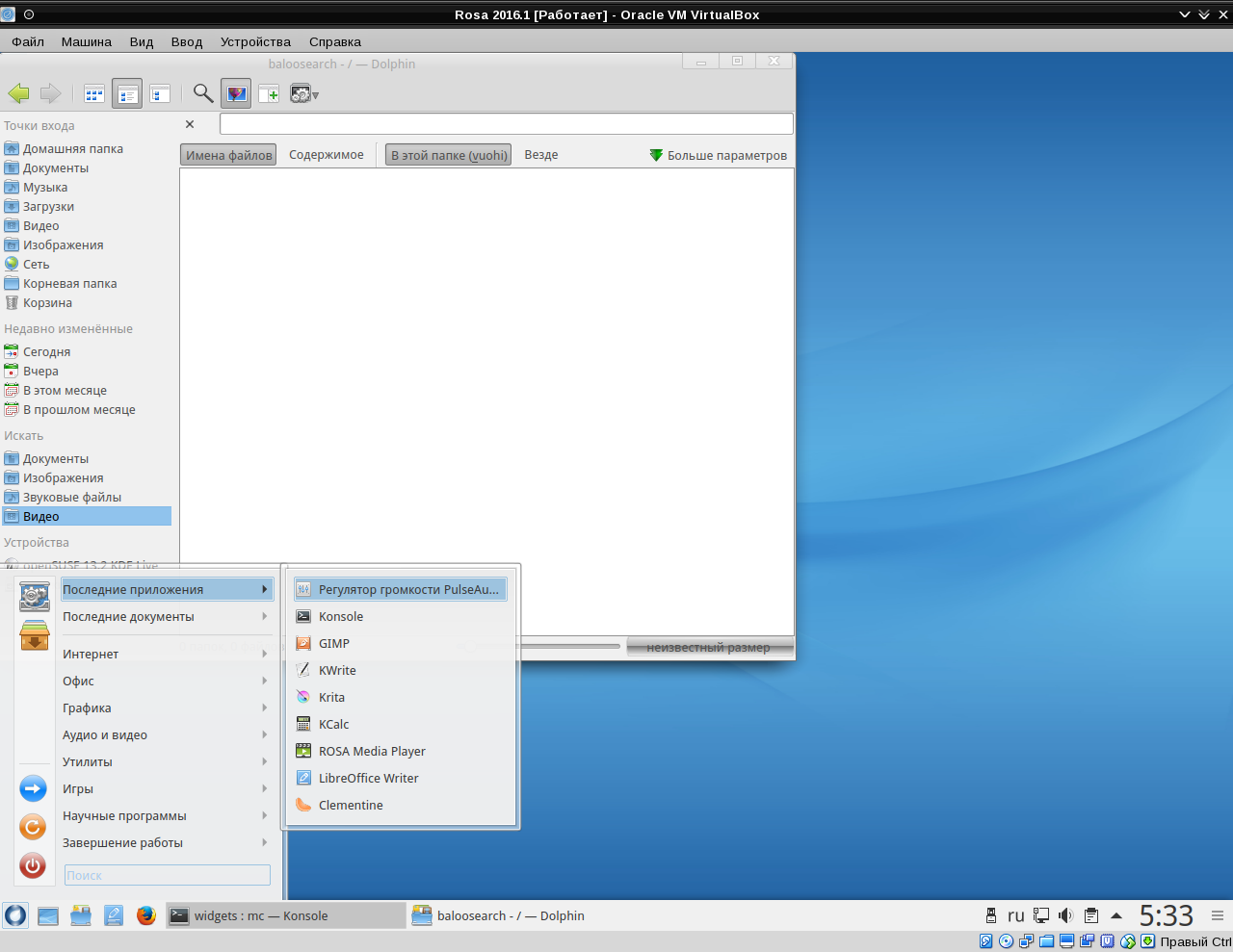 У меня в виртуалке плазма с росиной темой почему-то вообще очень тормозно работает. А KDE4 летает. Не знаю, почему.bevlam писал(а):На virtualbox был установлен образ rosa-2016.1 18028. Через минуту после загрузки ОС, без каких либо настроек оной, был запущен "Системный монитор" и "Spectacle", спустя ещё 20-30 секунд сделан снимок экрана. Затем произведена полная смена оформления с дефолтной на breeze, завершение сеанса и вход в систему. Соблюдая последовательность предыдущих действий и временных интервалов - сделан ещё один снимок. Это не вопрос так, как все Ваши ответы я знаю заранее.