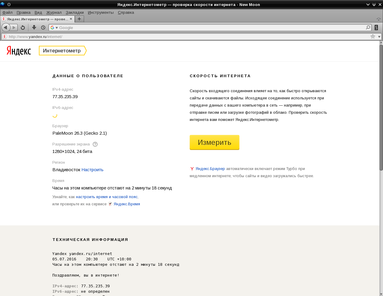 https://www.yandex.ru/internet/ - все хорошо