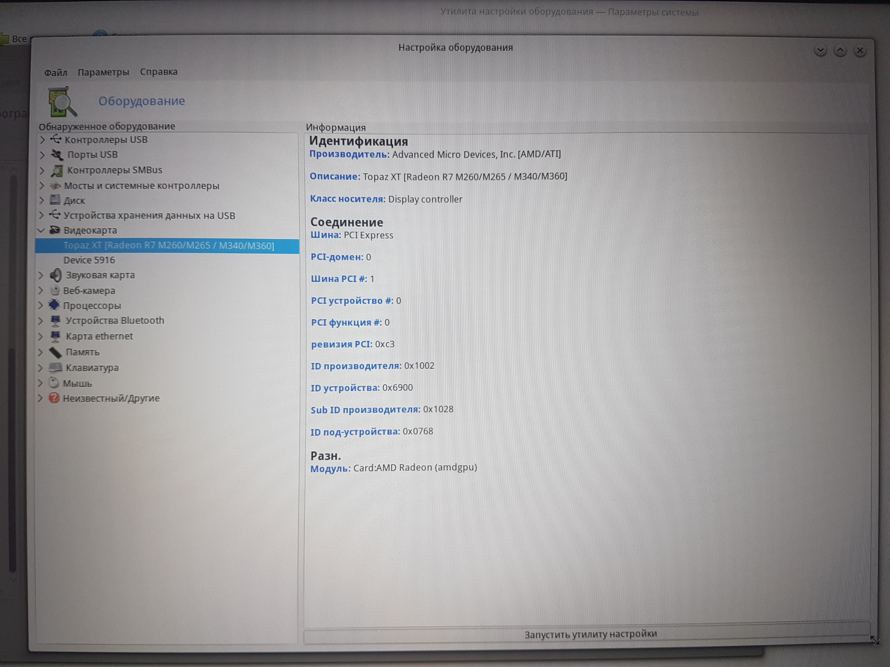 У ноутбука 2 видеокарты Intel (работала на VESA) и ATI Radeom R7 m445 (работала на AMDGPU).