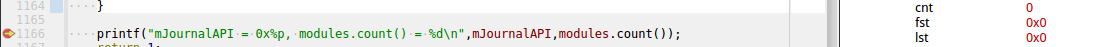 переменная cnt на самом деле = 1, но в отладчике мы её видим как 0 функция modules.count() просто возвращает копию переменой cnt. Таких ситуаций очень много, мало того вместо скажем 1, которая явно присваивается мы видим 5 и т.д, предыдущая версия creator-м проблем не было.