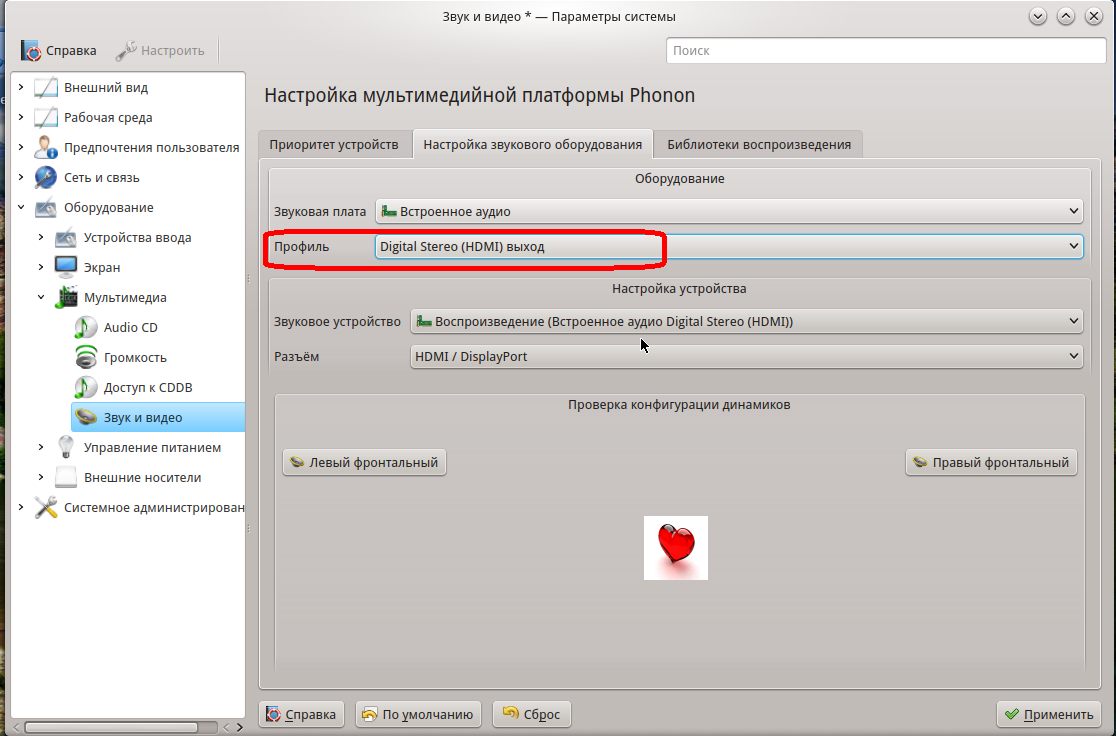 Чтоб звук воспроизводился через телевизор нужно в профиле включить подходящий вариант с HDMI.