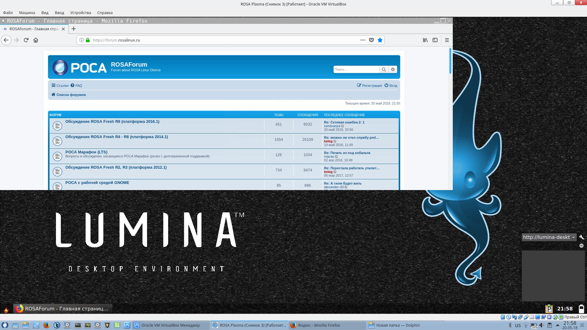 Начал очередное тестирования DE/WM. ROSA R10 (VirtualBox) Простой тест: войти, интернет на кабеле, включить Firefox (или другой браузер), войти в интернет, выйти из DE. Вот, что получилось: