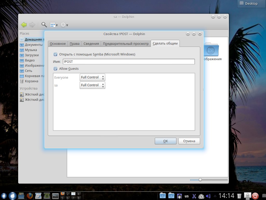 2.Кнопка "Изменить" > сначала выдаёт сообщение, что нужно добавить общий ресурс, работает после перезапуска DrakSamba.