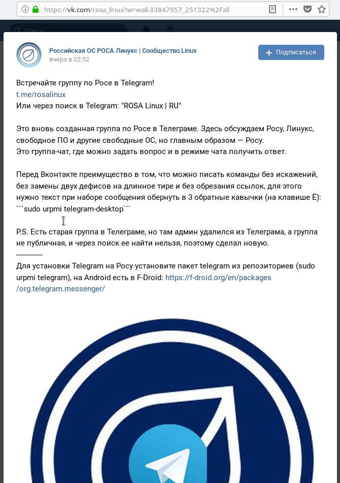 Вот так, прикрываясь именем и эмблемой вашей любимой ОС, администратор "официального сообщества" призывает пользователей саботировать решения суда РФ,