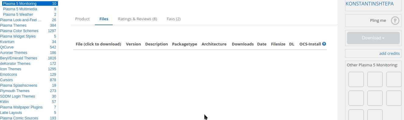 Да вроде я и через хромиум захожу на сайт https://store.kde.org/ без проблем .Даже зарегистрировался на всякий случай . Только вот скачать ничего нельзя , так как нет ссылки на скачивание файла. Описание программы есть , а самого файла на скачку, нет . Или я не туда жму ?VictorR2007 писал(а): 31 май 2018, 14:42 Да вроде http://www.kde-look.org/ уже не существует. По идее, при переходе на www.kde-look.org должна