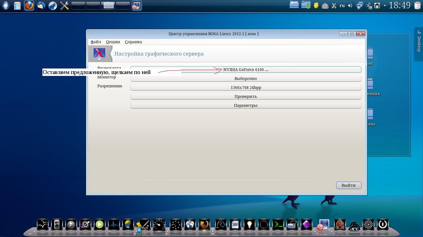Проприетарный драйвер поставить и настраивать в немbas писал(а):В 2012.1 бета в live уже лучше. Проектор и монитора работают, но есть но. Проектор только часть стола показывает, а часть не влазит. Показывать презентации и там неплохо (поставив в настройках проектор справа), а вот работу в ОС уже сложенее