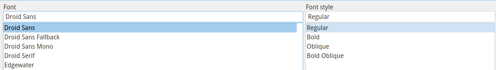 Настраивая шрифты в Double Commander (qt4) заметил, что проблема не в шрифте, а в начертании. Почему-то qtconfig воспринимает только одно начертание, первое в списке возможных. Просто в самом конфигураторе это не бросается в глаза, а в настройках DC - бросается. Перебором выбрал шрифт (Droid Sans), где нужное мне начертание (Regular) первое: