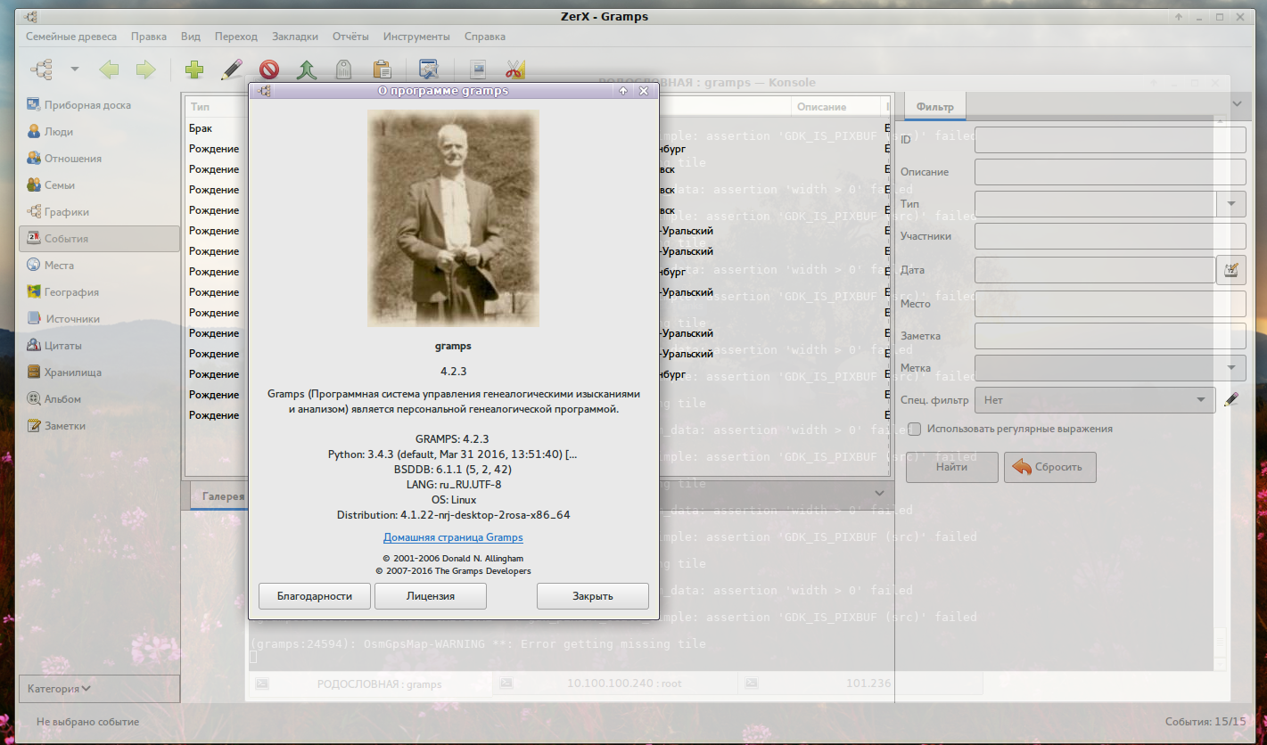 Поставил посмотреть программу Gramps, для построения генеалогического древа. Появилось несколько проблем.