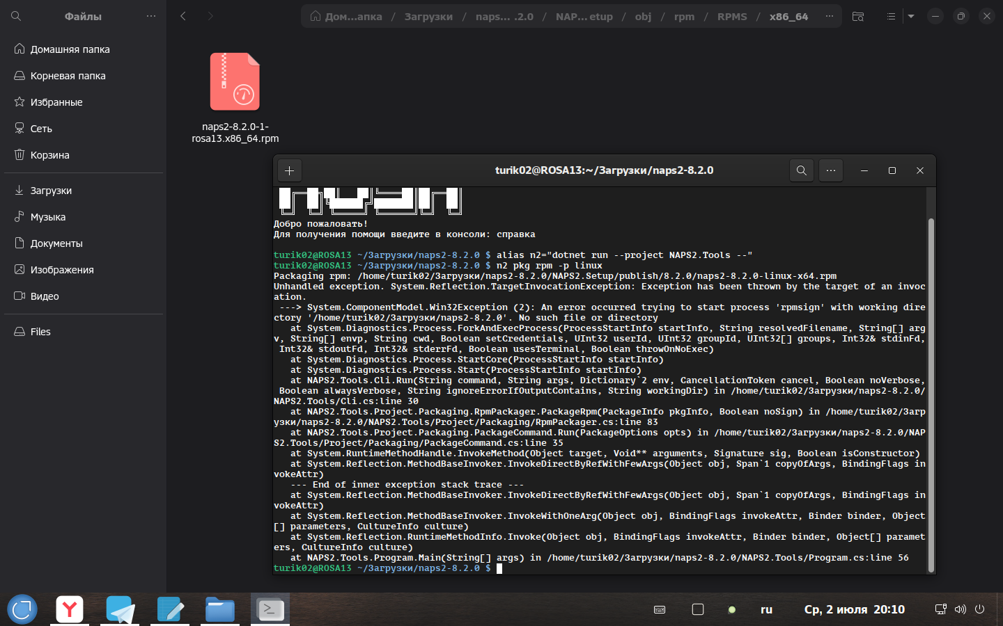 Готовая rpm будет лежать в папке naps2-версия/NAPS2.Setup/obj/rpm/RPMS/x86_64/
