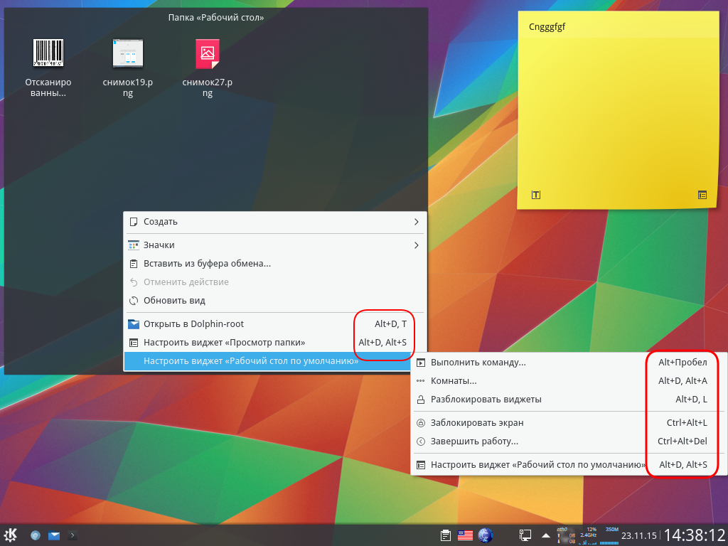 Я бы настроил если б было все так просто. На нажатия по экрану правой кнопкой не реагирует. Работает только меню быстрого запуска по alt+F2. В настройках кде где настраиваются комнаты (поведение рабочей среды) комнаты отсутствуют, создать новую нет кнопки.Алзим писал(а):Я думаю, что у вас отсутствует или не настроен виджет рабочего стола.