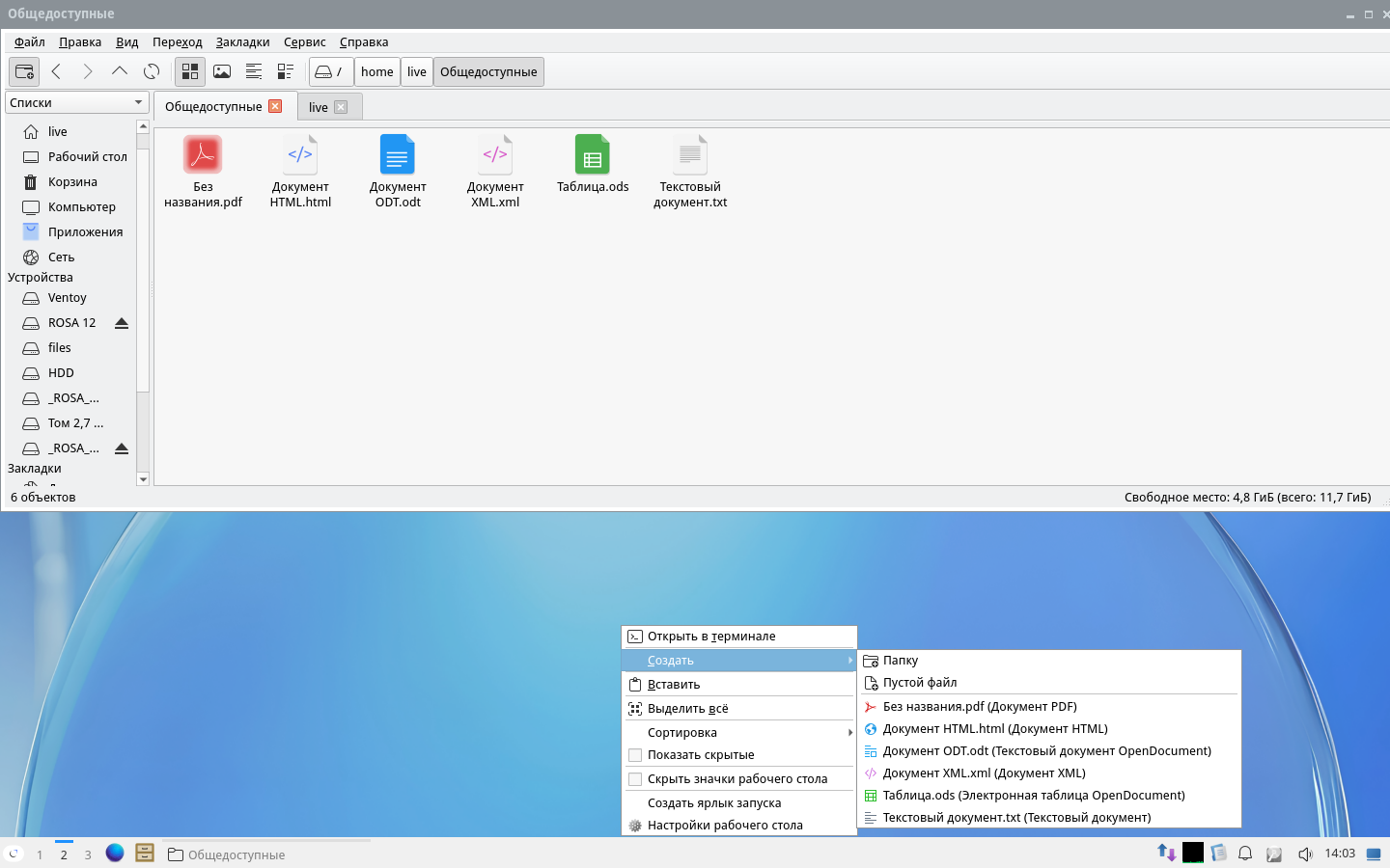 Есть ли возможность в Rosa LXQt вывести на рабочий стол корзину и ярлык "мой компьютер" ? И есть ли возможность в контекстном меню включить возможность создания не только простого текстового файла, но и файла офисного приложения?
