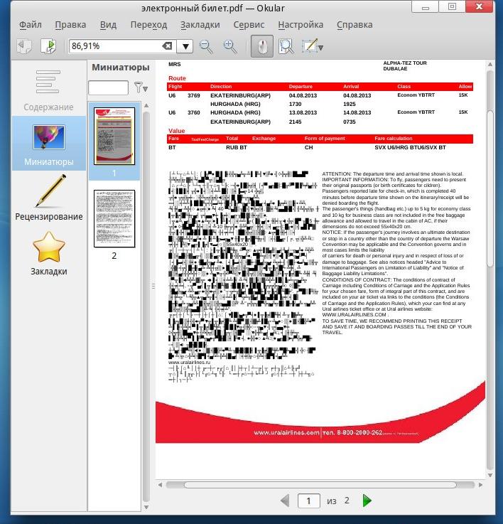 Okular отображает документы так: