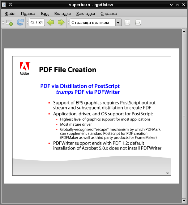 awl писал(а):P.S. В репозиториях Fresh имеется qpdfview, но уже устаревшей версии. Не умеет открывать djvu-файлы. Хорошо бы обновить пакет до свежей версии.