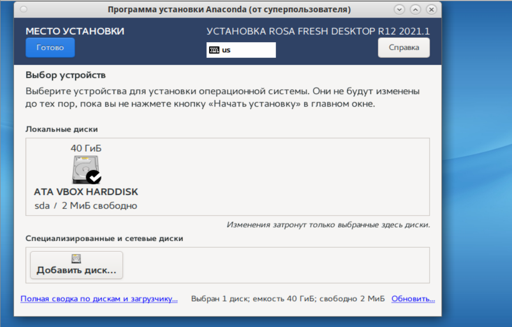 Из anaconda вполне удобно разбивать/создавать,va9(2) писал(а): 04 окт 2021, 21:55 Имхо, разбивку удобней проводить через "Дополнительно (Blivet-GUI)".