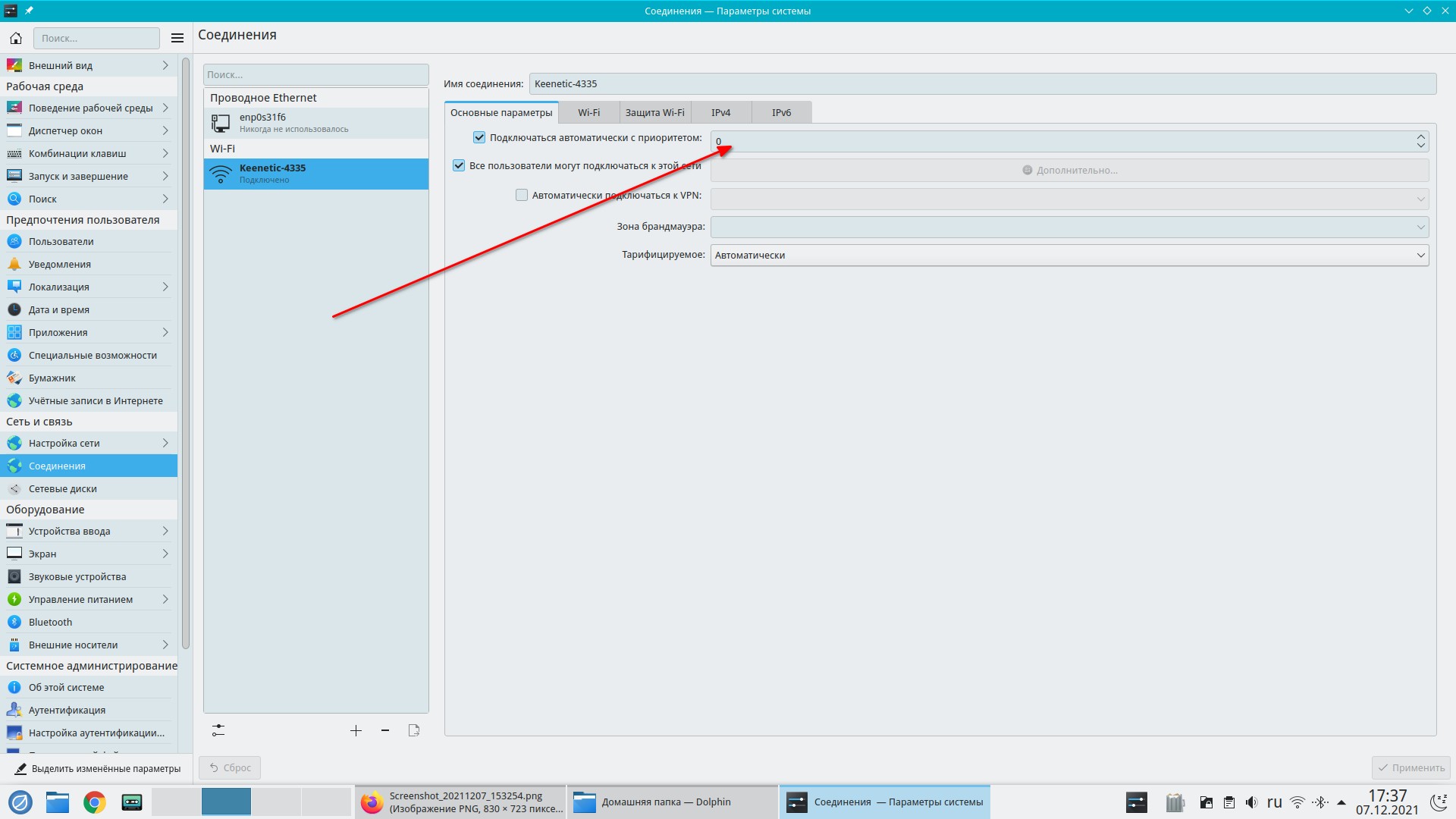 Ну и приоритет для точки доступа должен быть с более высоки значением, чем у проводного соединения.