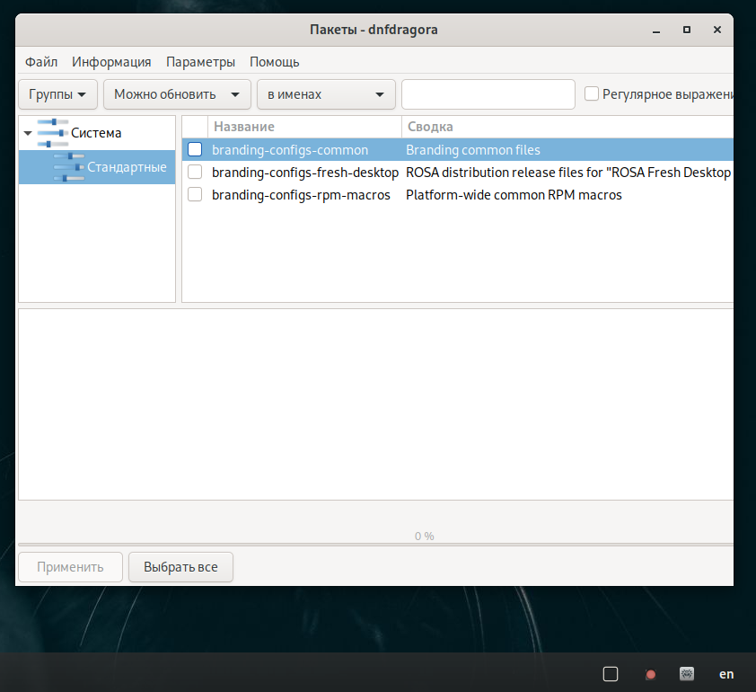 Третья наша разработка для релиза 12.3 - индикатор обновления системы, rosa-update-system. Висит себе в системном лотке, говорит есть ли обновления и даже показывает их список, ну и обновлять систему тоже умеет.