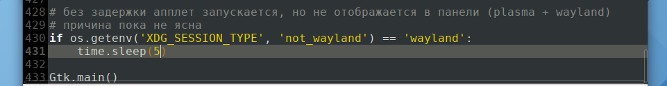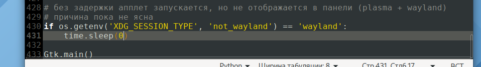 Задержка добавлена для сессий вейлэнд. В плазме.апплет запускался без иконки в трее. У вас wayland? DE какое?