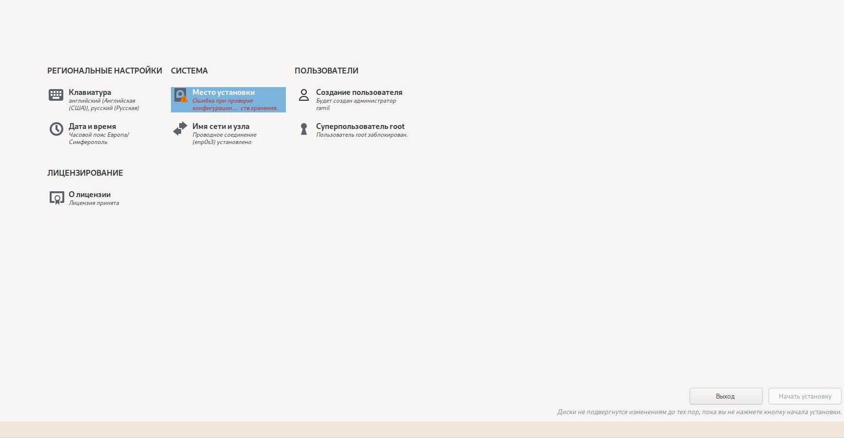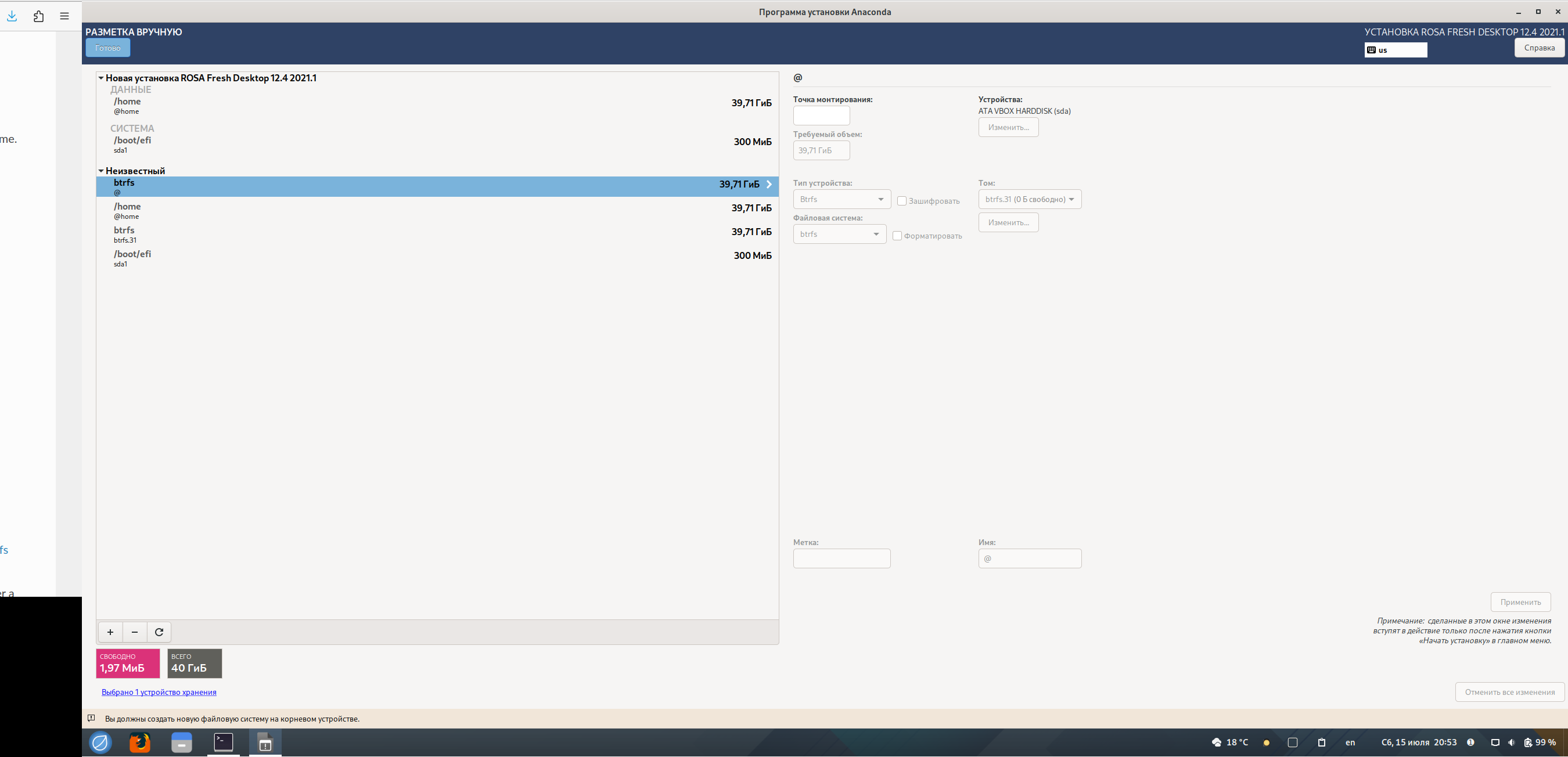 Не могу установить Rosa Fresh Gnome на Btrfs.